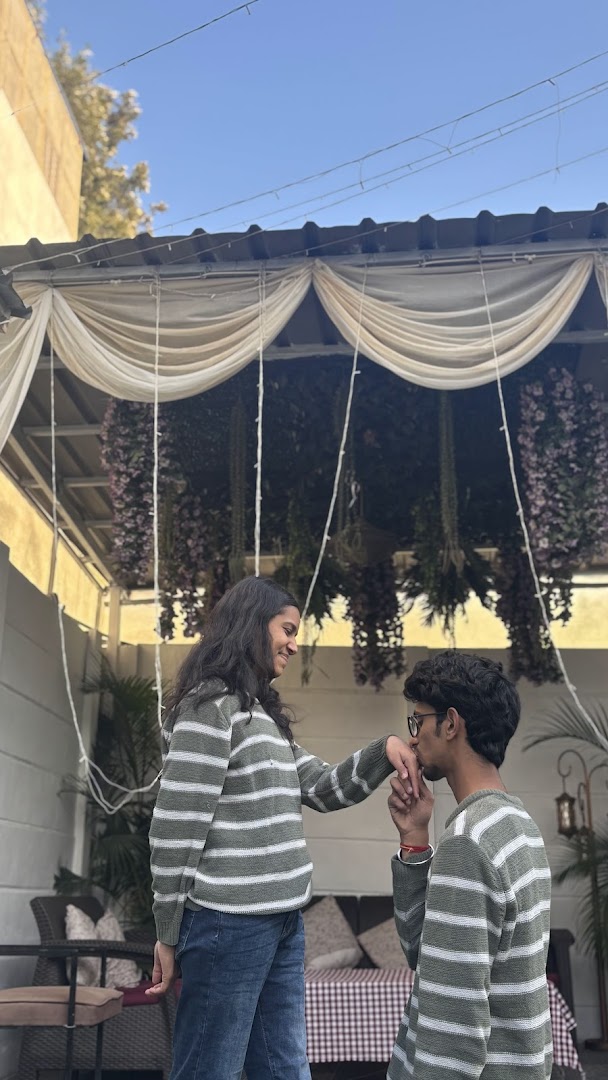 Walking in the campus together around sunset, you surprised me. You proposed to me right there. We clicked photos that captured that magical moment, and as I walked you back to the hostel, you kissed my hand—a memory forever etched in my heart.
