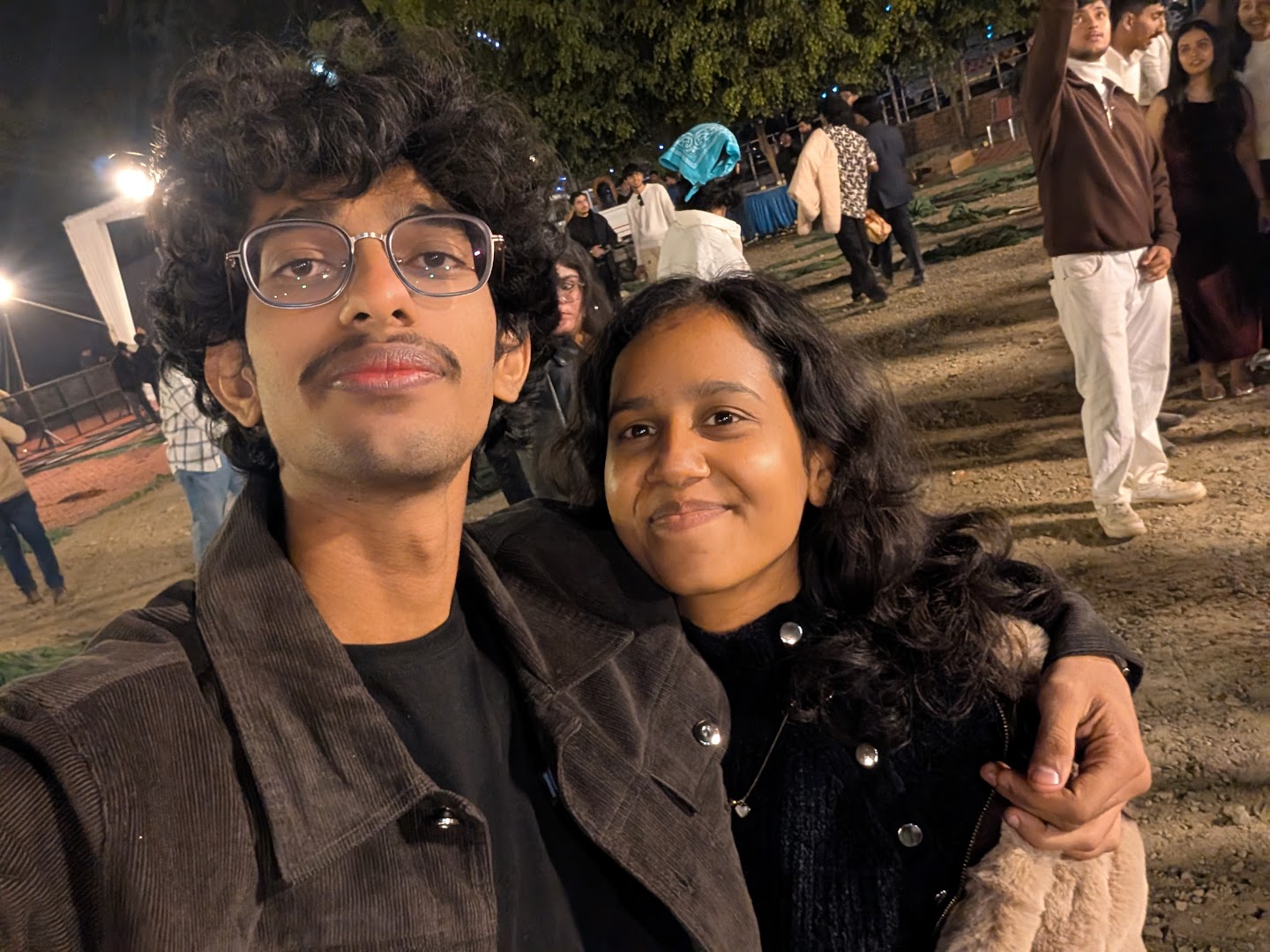 It all started at Youthopia, our college fest. Pratibha called me down to explore, and that's when you walked in with her. I remember being so shy, standing there in my grey shirt. But you, in that red sweatshirt, caught every bit of my attention.